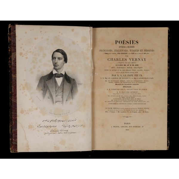Kitabın başındaki taşbaskı portresinin altında kendisini "Fransız, İtalyan, Türk ve İranlı şair" olarak nitelendiren çocuk dahi Charles Vernay´nin (1842-1866), 11 ilâ 16 yaşları arasında kaleme aldığı Fransızca, İtalyanca, Türkçe ve Farsça şiirlerinden meydana gelen derleme...