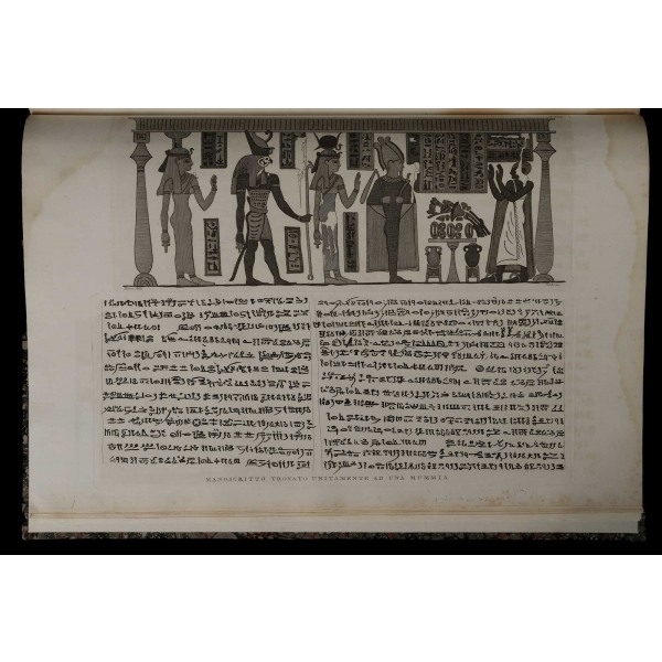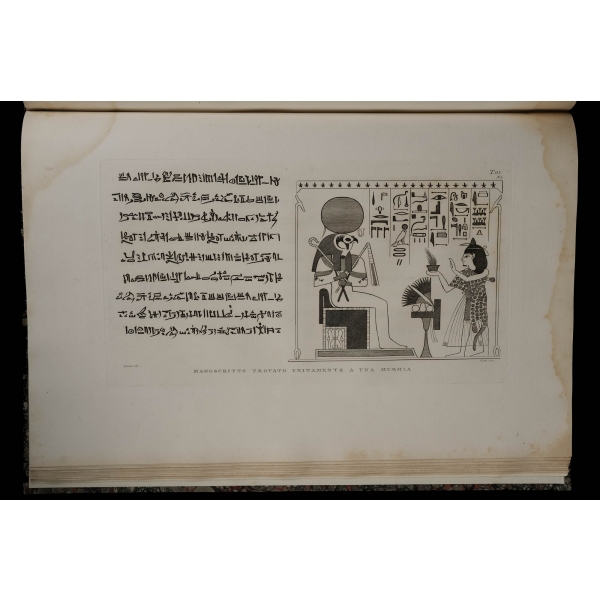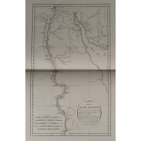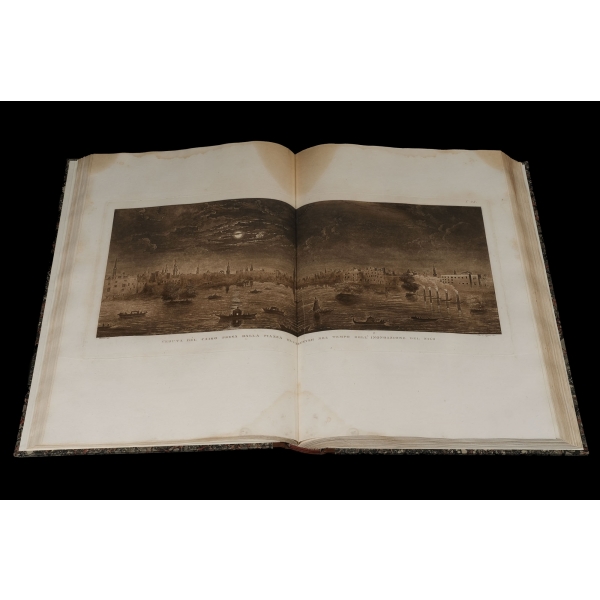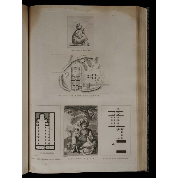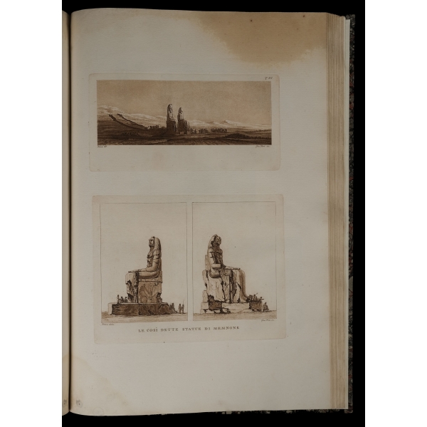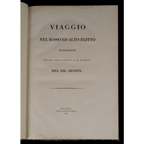 Napolyon Bonapart´ın daveti üzerine Mısır anıtlarını kaydetmek için Fransa’nın 1798 Mısır seferine katılan sanatçı ve arkeolog Dominique Vivant Denon´un, bu seferde topladığı malzemelerle meydana getirdiği, modern Mısırbilim´in temelini atan meşhur eserinin ilk İtalyanca baskısı...