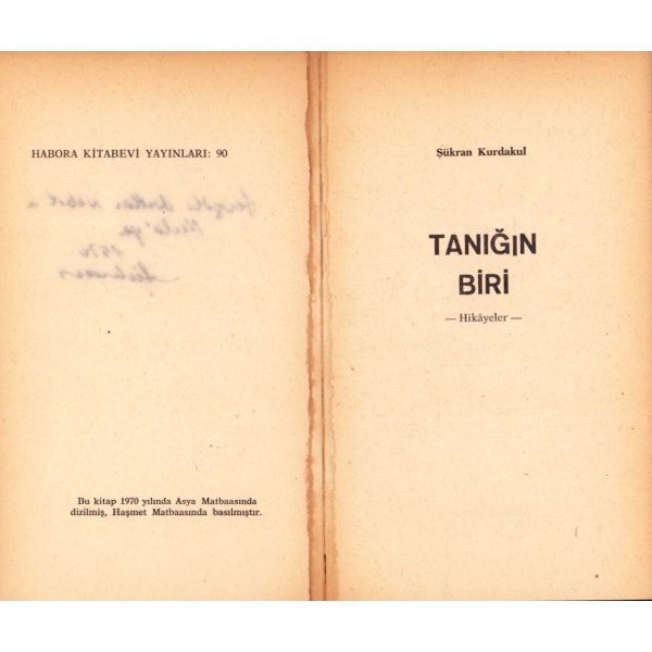 İthaf, "Sayın uğraşdaşım Olcay Kolçak'a, geçmiş acı günlerin çekilerini anlatan bu kitabı, Koşuyolu'ndaki tanışmamızın bir anısı olarak... 7.9.1976" şeklindedir.