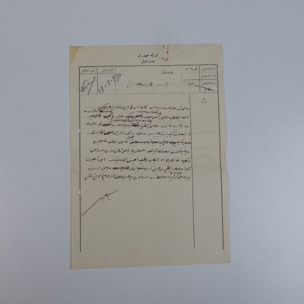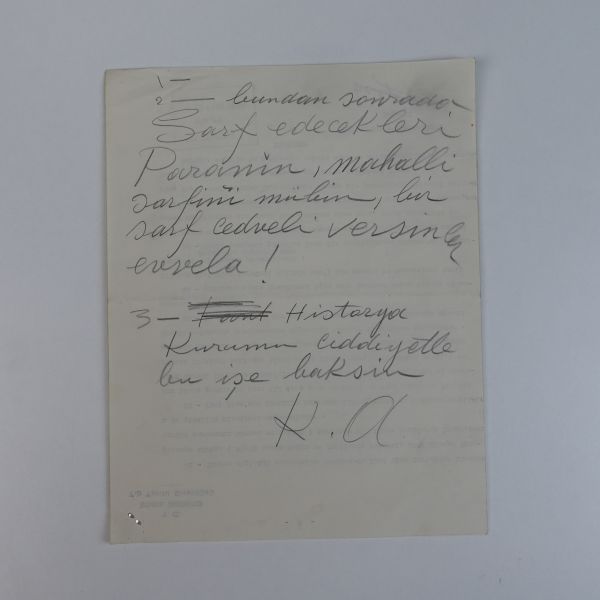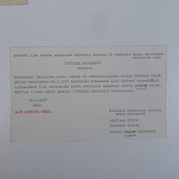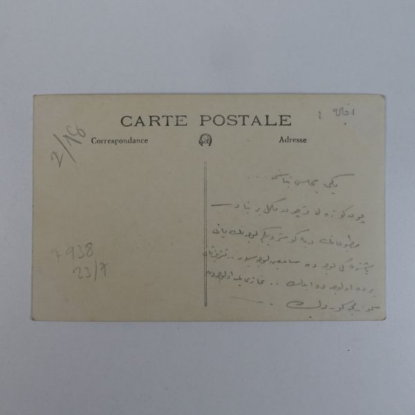 Fotoğrafın ön yüzüne, mecliste görülen belli başlı isimler not düşülmüştür. (Soldan sağa): "Yaveri - Yaveri - Yaveri - Gazi Paşa - Matbuat - Tevfik Rüşdi (Aras) Bey" Fotoğrafın arka yüzüne ise "İkbal?" Hanım´a hitaben, "Yeni Meclis Binası - Çok güzel ve çok mükemmel bir binadır. Matbuatın diye gösterdiğim locanın yanı başındaki loca da Sâmi´nin locasıdır. Teşrinisani birde o locada idik... Gaziyi o locadan güzelce gördük..." notu düşülmüştür.