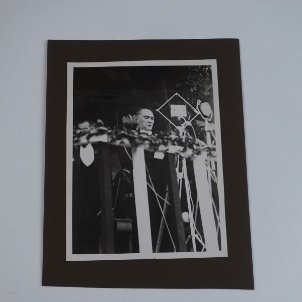 Gazi Mustafa Kemal Paşa, şapka inkılâbını başlatmak için Kastamonu´yu uygun görmüştür. 27 Ağustos 1925 tarihli İnebolu nutkunda geniş bir dinleyici topluluğuna hitap eden Gazi, şapka devriminin zaruriyetinden şu sözlerle bahsetmiştir: "Açık söylemek isterim, bunun adına şapka denir. Buna caiz değil diyenler cahillerdir. Onlara sorarım; Yunan serpuşu fesi giymek caiz olur da şapkayı giymek niçin caiz olmaz, korkmayınız bu gidiş zaruridir. Medeniyetin coşkun seli karşısında direniş beyhudedir". Müzayedemizde sunduğumuz fotoğraf, Kastamonu´dan Ankara´ya dönüş yapan Gazi´yi, kendisini karşılamaya şapka takarak gelenlerle birlikte göstermektedir.