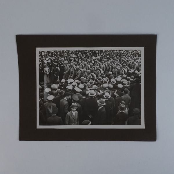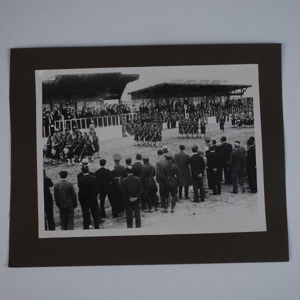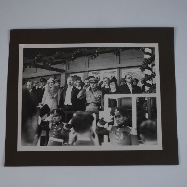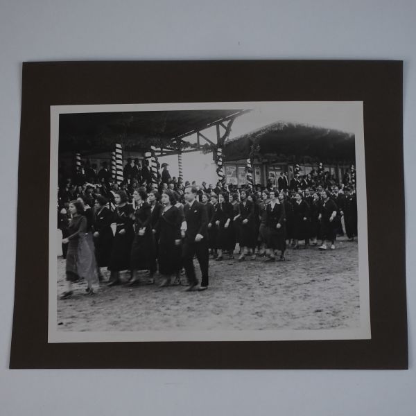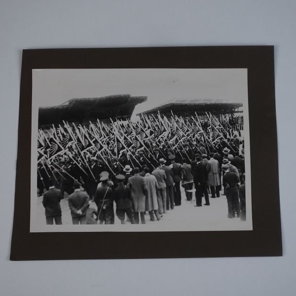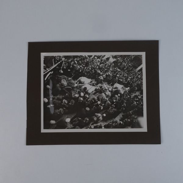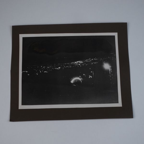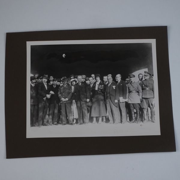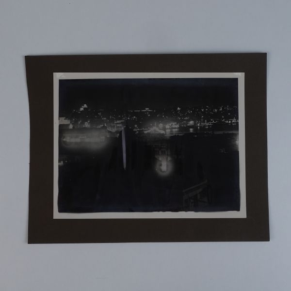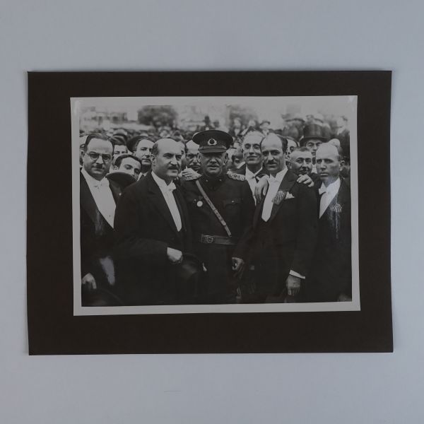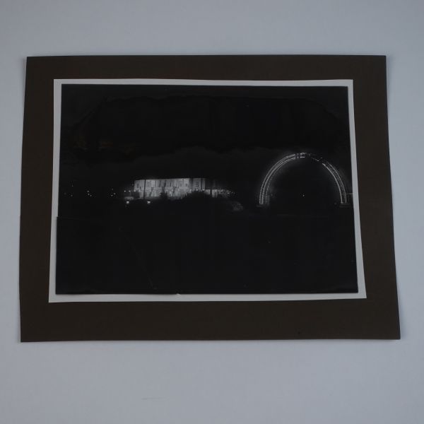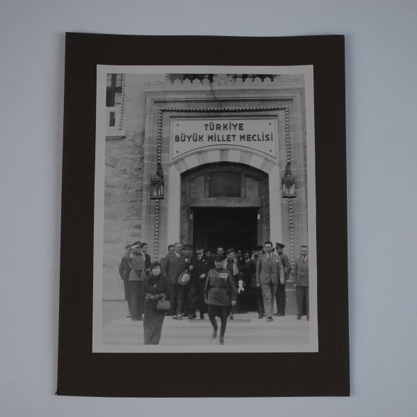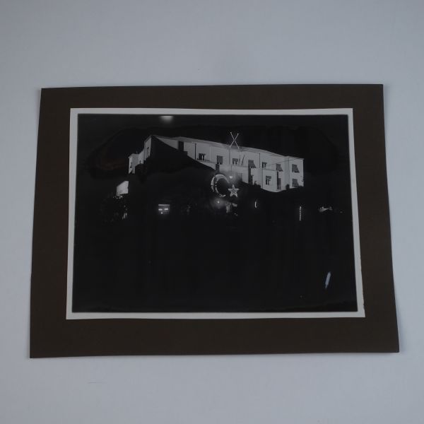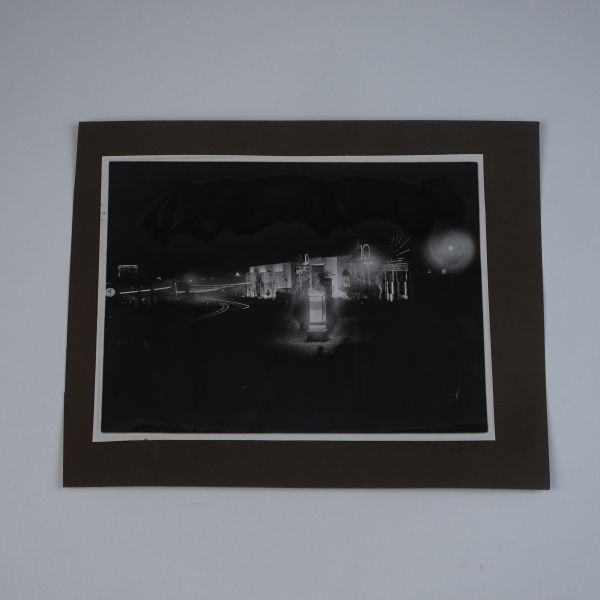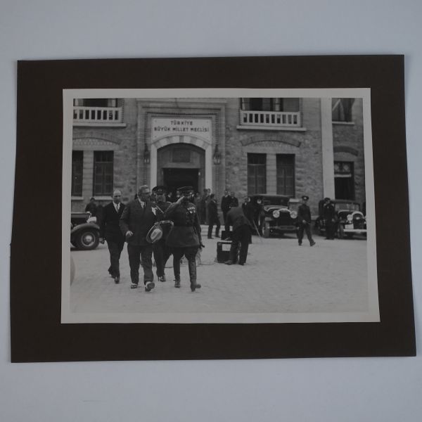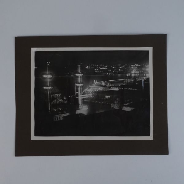 Sol tarafta, kumbara formunda tasarlanmış Türkiye İş Bankası reklamlı Longines meydan saati, onun biraz arkasında ise "(Ulus) Şehir Bahçesi Kışlık Salon - 26-10-933 Perşembe´den İtibaren Her Akşam İstanbul´un En Güzide Hanende ve Sezandeleri..." yazılı bir ışıklı reklam panosu görülmektedir.
