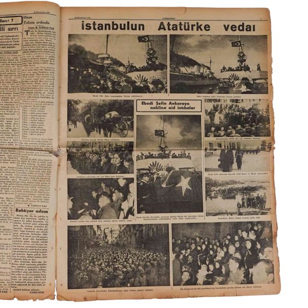 "Bütün şehir büyük ölünün geçeceği yollara dökülmüştü; Ebedî Şef, yüz binlerce hıçkırık sesi ve bir göz yaşı seli içinde bizi yetim bırakarak, artık hiç dönmiyeceği seyahatine çıktı..."