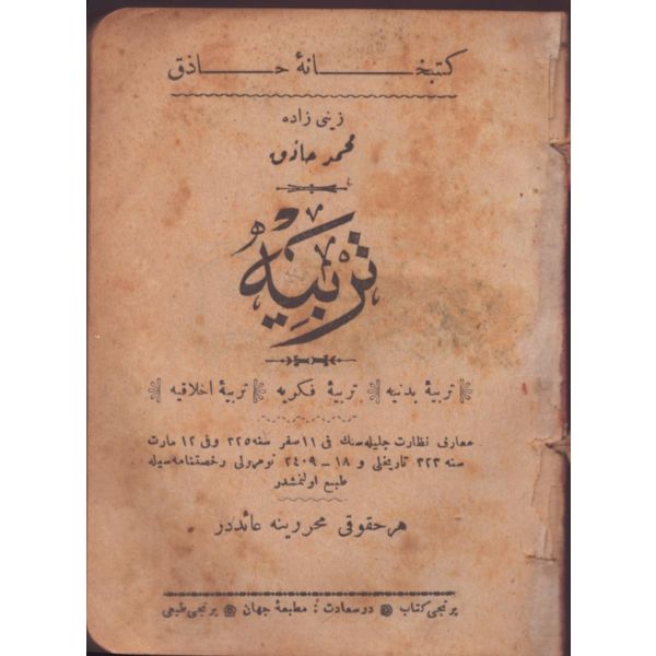 Paspartu üzerinde Osmanlıca, "Karesi Mutasarrıfı Mehmed Ali Ayni" yazılıdır. Çeşitli illerde mutasarrıflık ve valilik yapan Mehmed Ali Ayni, başarılı memuriyet hayatı yanında yazdığı ve tercüme ettiği kitaplar, açtırdığı okullarla ilim ve kültürün ülkenin en uzak köşelerine kadar yayılmasında da katkı sahibi olmuştur.