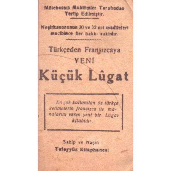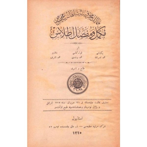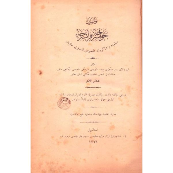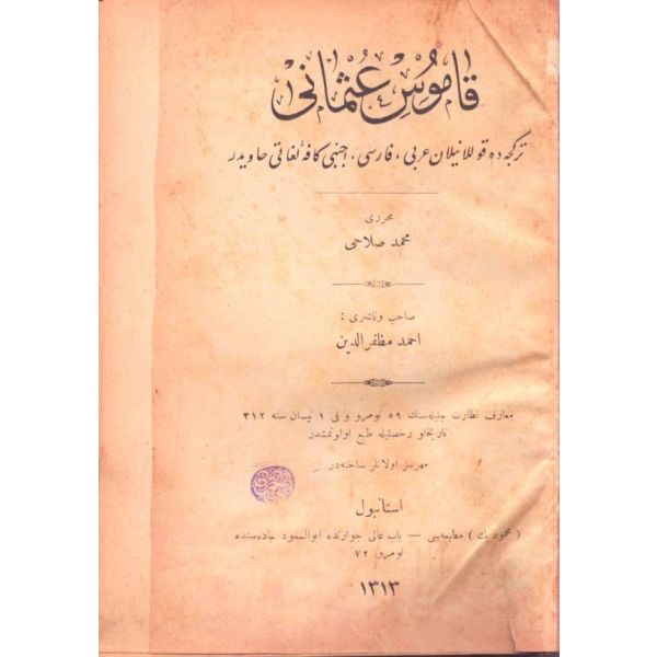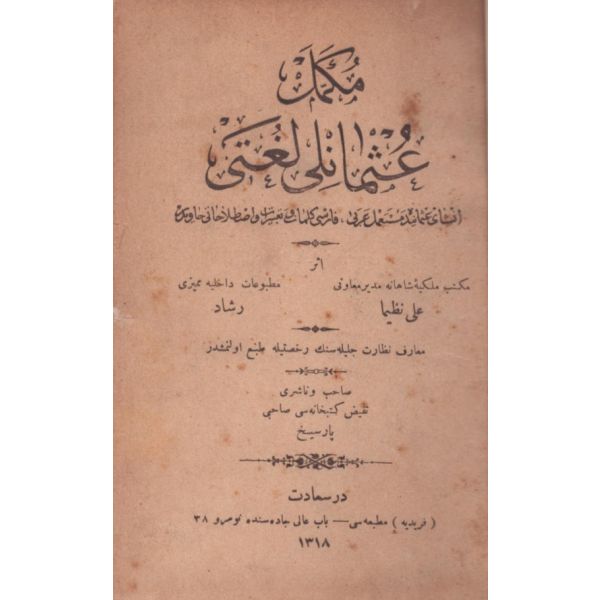 "İnşa-yı Osmanide müstamel Arabi, Farsi kelimat ve tabirat ve ıstılahatı hâvidir [Osmanlı yazı dilinde kullanılan Arapça, Farsça kelime, deyim ve terimleri içermektedir]" Dış cilt sırtı ayrıktır.