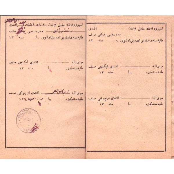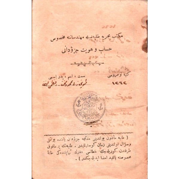Cüzdan içerisinde öğrencinin beden ve sağlık bilgileri, detaylı ve imzalı izin günleri dökümü, maaş ve istihkak bilgileri, ayrıntılı not dökümleri, ahlaki durumuna ilişkin değerlendirmeler mevcuttur. Cilt sırtı ayrıktır.