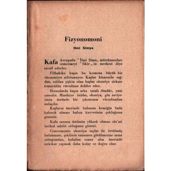 Zamanının Maarif Vekili Reşit Galip´in, "Harf devriminde en çok çalışan yazar" olarak tarif ettiği İskender Fahrettin Sertelli, polisiye ve tarihî roman akımının etkili isimlerindendir. Bu eseri ise, yüz özelliklerinden karakter analizi yapmaya dair nadir bir çalışmadır.