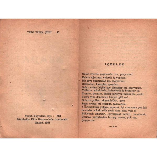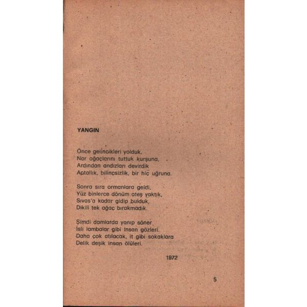 Şiir anlayışını, "Yaşadığımı şiirlerimde en yoğun yönleriyle, en kesin sandığım biçimlerde, en kısa olduğuna inandığım ölçülerle verdim, veriyorum, vereceğim." sözleri ile ifade eden Özdemir Asaf´ın, kendi kurduğu ve kendi tasarımıyla, yalnızca kendi kitaplarını yayımladığı yayınevinden çıkan eseri...