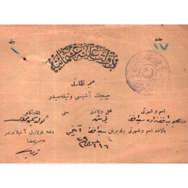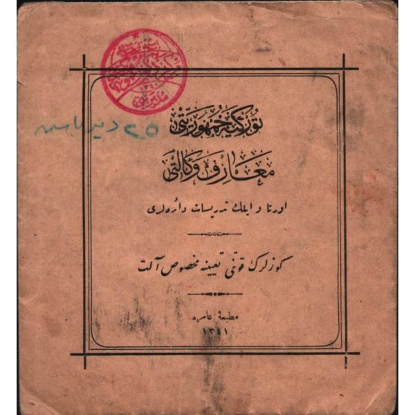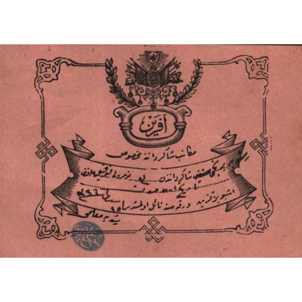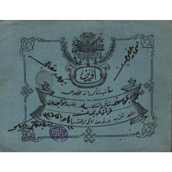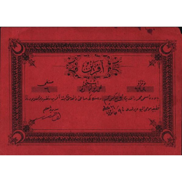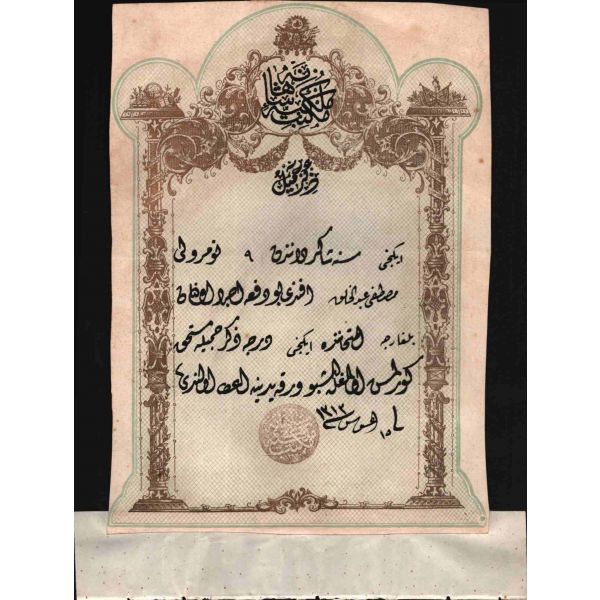 Türkiye Cumhuriyeti´nin ilk Maliye Bakanı ve Birinci emisyon kâğıt paralarda yegane imza sahibi olan Mustafa Abdülhalik Renda´nın yüksek öğrenim gördüğü yıllarda Mekteb-i Mülkiyeyi Şahane´den almış olduğu Zikri Cemil (Takdirnamedir).