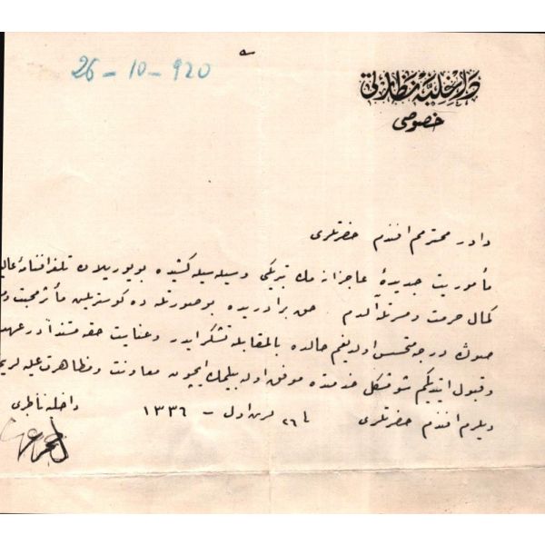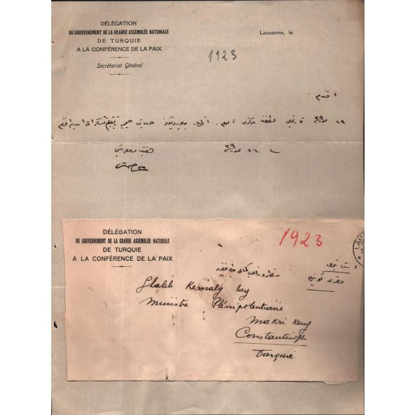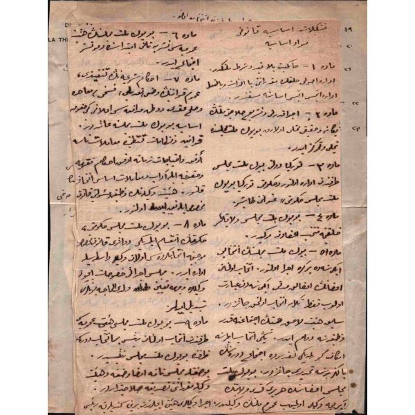 Mektubun arkasında teşkilatı esasiye kanunu maddeleri yer almaktadır.