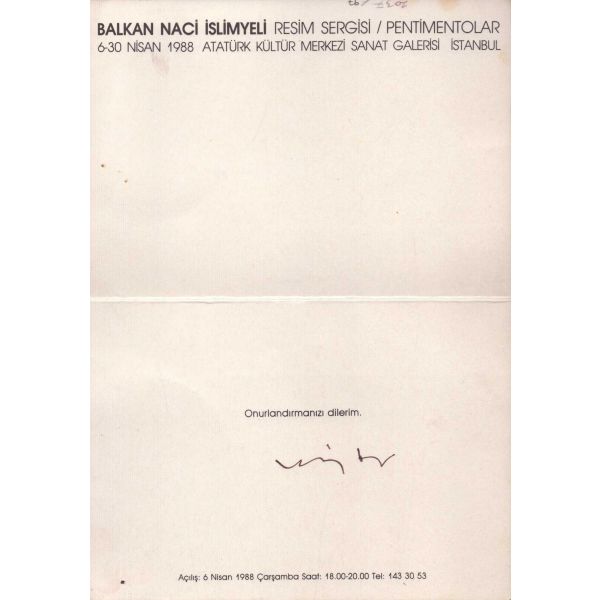 Pentimentolar dizisi ilk olarak 1984 tarihinde Urart Sanat Galerisi’nde son olarak da 1988 tarihinde seçkiler olarak Atatürk Kültür Merkezinde sergilenmiştir. Sergilenen puslu, sisli bir atmosferin hakim olduğu kentli/burjuva resimleridir.