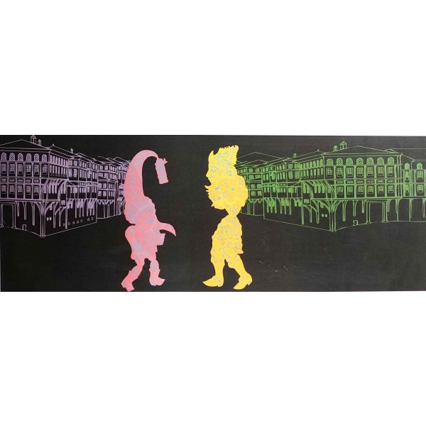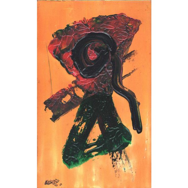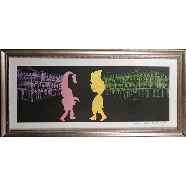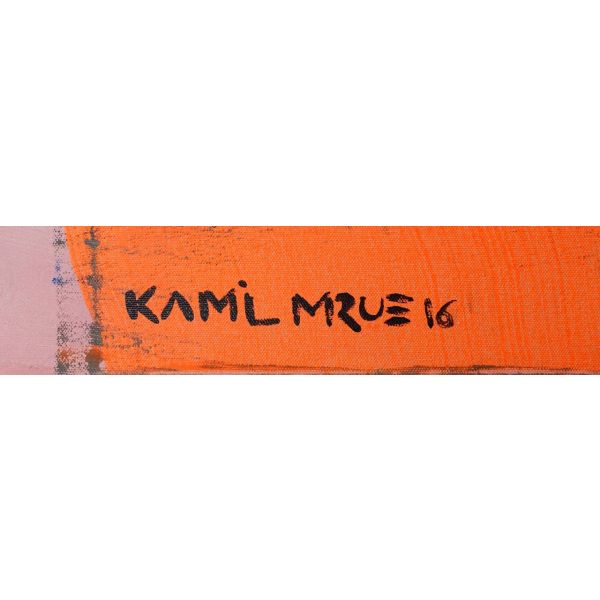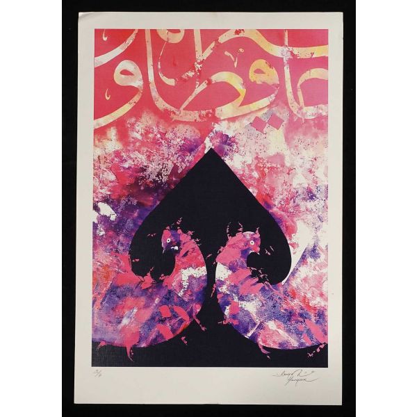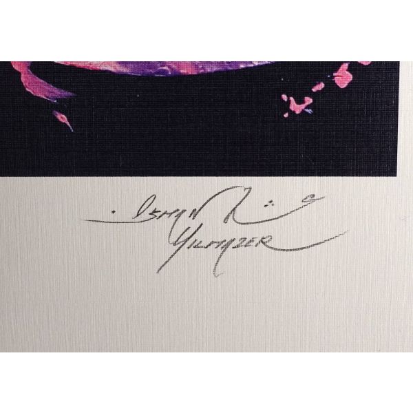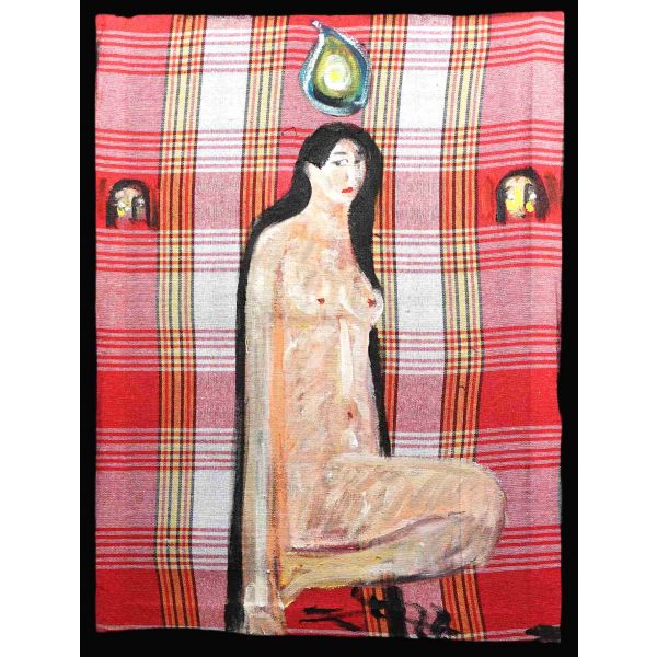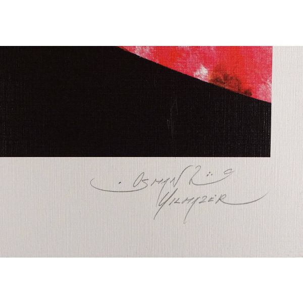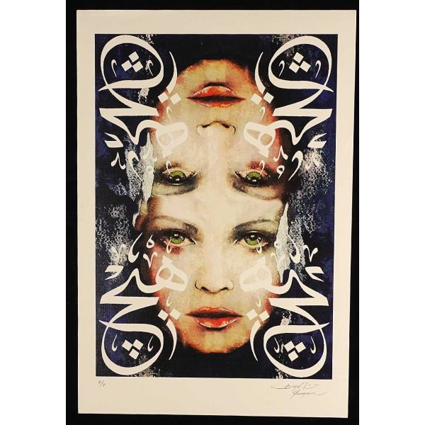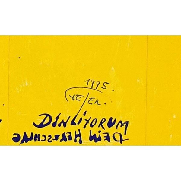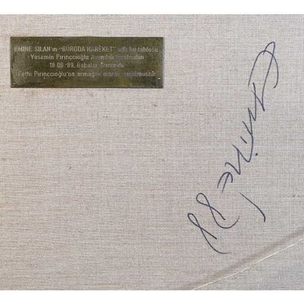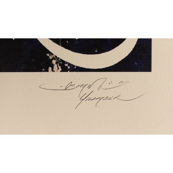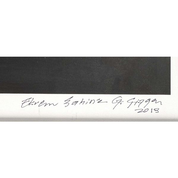 İmza; peştemalin arkasında bulunan sanatçının kendi fotoğrafı üzerine atılmıştır.