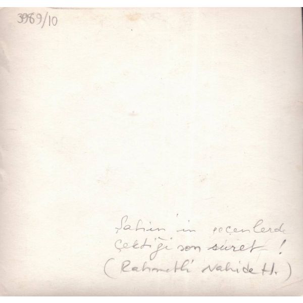 "Şahin´in geçenlerde çektiği son suret! (Rahmetli Nahide H.)" yazılıdır.