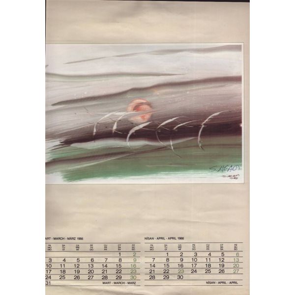 Takvimde yer alan Salih Acar resimlerinin tamamı sanatçı tarafından imzalanmıştır.