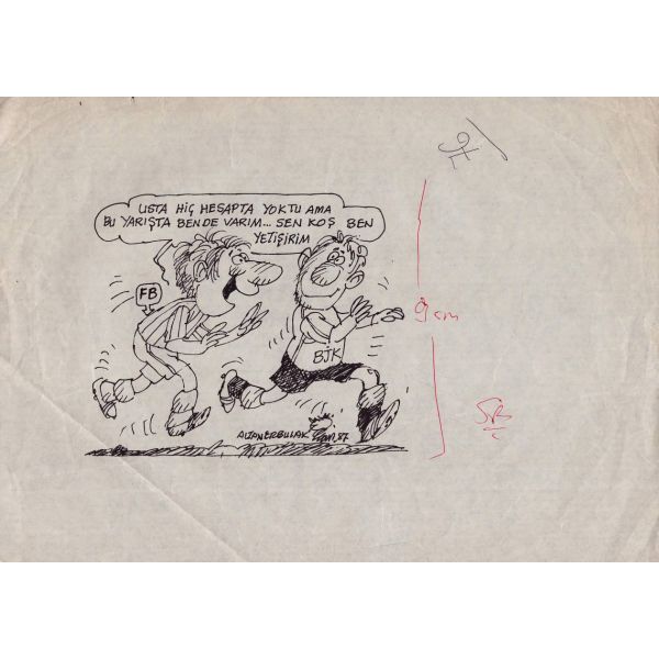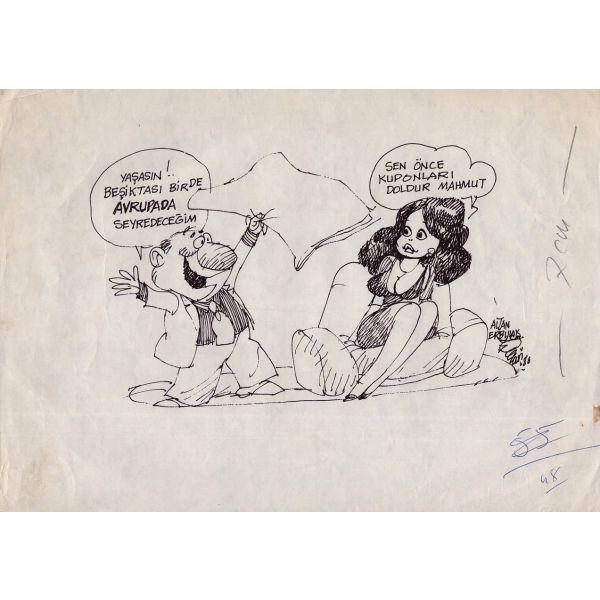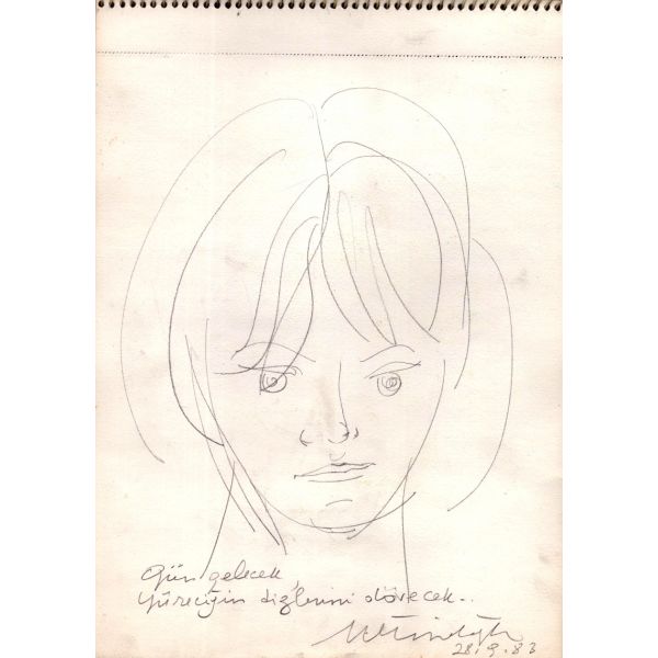 "Evet, yeniydi o ..., bu da .. Evet, benim de böyle dolar ... Hanımlar değil ama, bir hanım beni böyle de beğenmiyordu" yazılı ve Metin Eloğlu´ndan imzalıdır.