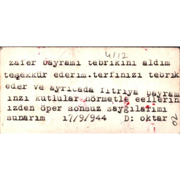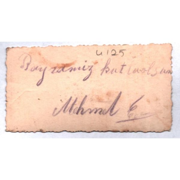 BAYRAM TEBRİK KARTI, 03.10.2022 saat: 21:00'a kadar internet sitemizden pey verebilirsiniz. 21:02 itibariyle canlı müzayedemiz başlayacaktır. Kitap, Dergi ve süreli yayın hariç tüm ürünlerden % 20 ürün KDV'si alınmaktadır. Komisyon Oranı: % 20 + KDV'dir. ÖDEME SÜRESİ MÜZAYEDE BİTİMİNDEN SONRA 1 HAFTADIR.