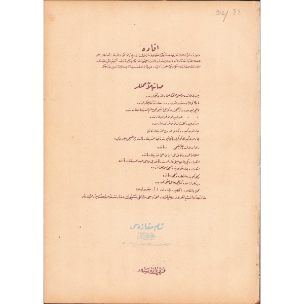 Üst kısımda "İstanbul'da Otuz Bir Mart Vaka-i İrticaında Köprü Başında Abdülhamid'in Zalim Askerlerine Karşı Durup Din ev Millet Yolunda Feda-i Can İden Yüzbaşı İlyas Bey'in Vatan Kardeşlerine Yadigarıdır' yazmaktadır.