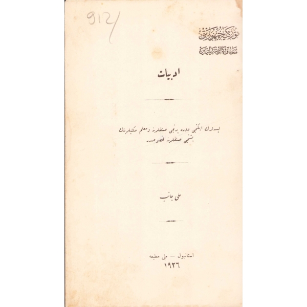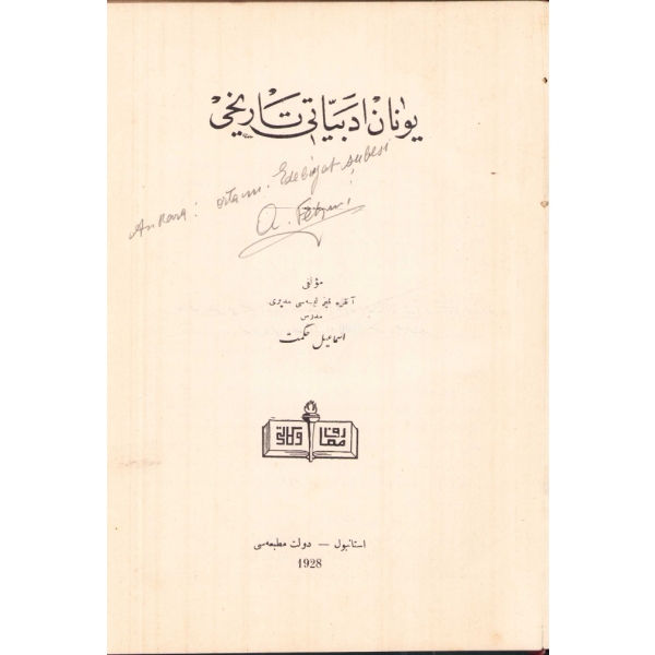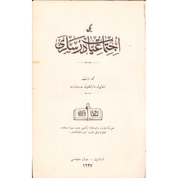 Bediiyat, Ziyaeddin Fahri [Fındıkoğlu], Devlet Matbaası, İstanbul 1927 / Sanat Musâhabeler, Jean Marie Guyau, Çev. Hasan Ali, Devlet Matbaası, İstanbul 1928 / Usûl Hakkında Nutuk, Rene Descartes, Çeviren ve Şerh eden: İbrahim Edhem Mesud [Dirvana]