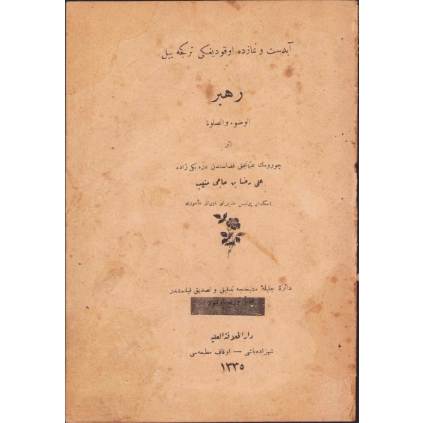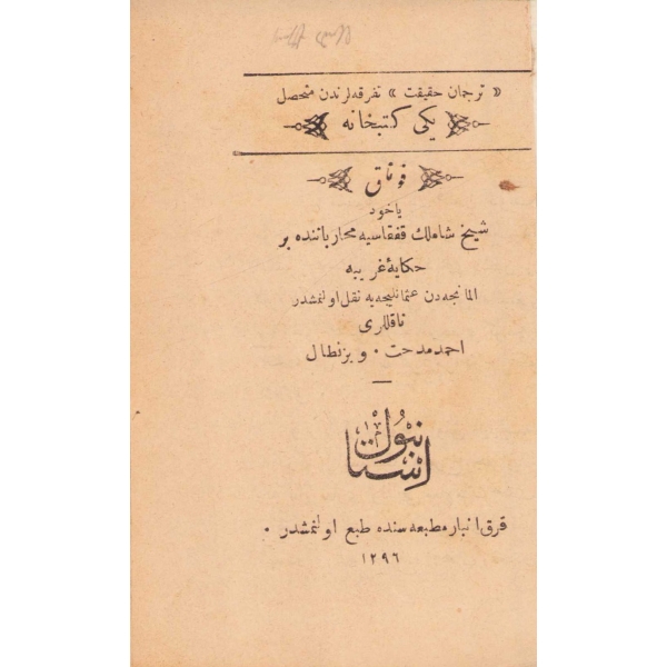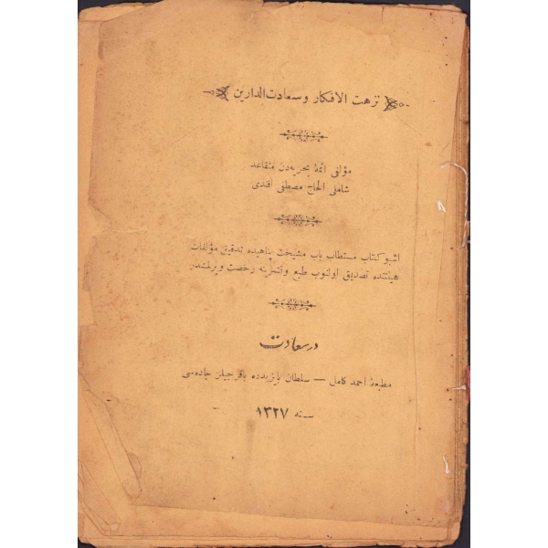 Tayyibetü'l-Ezkar, Hasan Tahsin, Mekke ile Medine ve sakinlerinin geleneklerine dair bir eser, Matbaa-i Amire 1316, 44 syf.; Siracu'l-Vehhac fi Leyleti'l-Mirac, Gavsı-ı Azam Şeyh Abdulkadir Geylani, mütercimi Ahmed Muhtar, Mahmud Beğ Matbaası, Dersaadet 1312, 71 syf.; Mearic-i Seb'a, Kutbu'l-Arifin Seydi Ali Bin Vefa, mütercimi Ahmed Muhtar, Mahmud Beğ Matbaası, İstanbul 1312, 47 syf., 18x13 cm