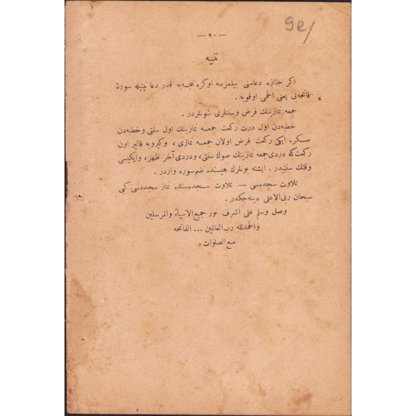 Kitabın bitiminde 56 sayfalık künyesiz Arapça bir metin yer almakta