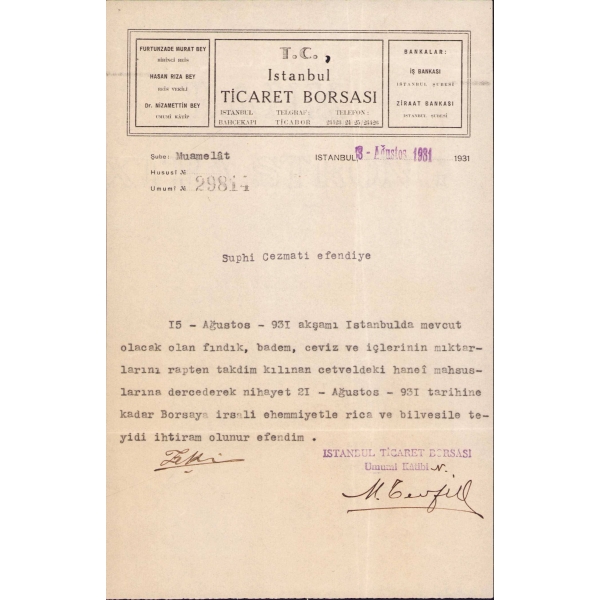 Zarf haliyledir. İki adet belge ve bir adet zarf bulunmaktadır.