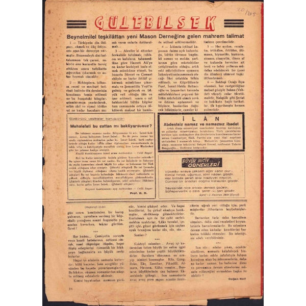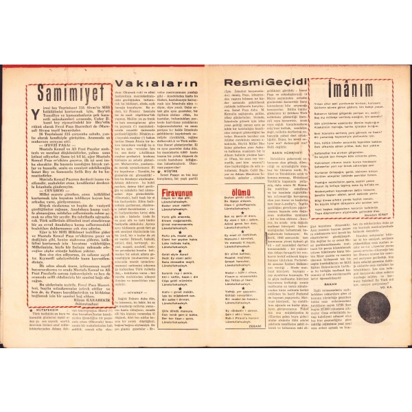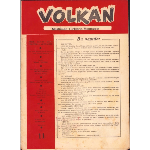 'Ali Şükrü Bey'in Katli', 'Kazım Karabekir Paşa'nın Hatıratı', 'Sultan Abdülhamid Konuşuyor' başlıklı yazılar mevcuttur.