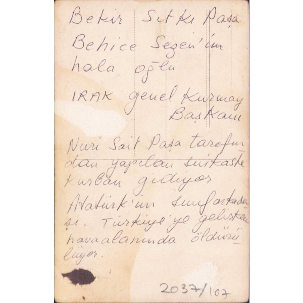 Bekir Sıtkı Paşa Türkiye'ye gelirken İngilizler tarafından Musul'da suikasta uğramıştır. Ortadoğu tarihini belki de kökünden değiştirecek olan Irak-Türkiye konfederasyonu fikri de onunla beraber yok oldu.