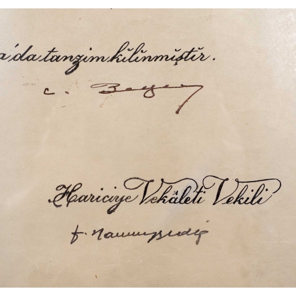 Belgede Ertuğrul Mebusu Seyyare İbrahim, Bolu Mebusu ve aynı zamanda Atatürk´ün başyaveri Cevad Abbas, Kütahya mebusları Şeyh Seyfi, Ragıb ve Receb´in ıslak imzaları yer almaktadır.