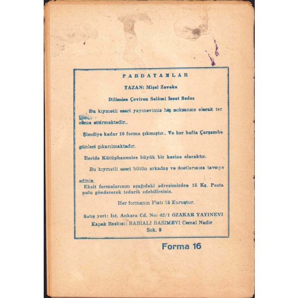 Çizgi Roman, 13.06.2021 saat: 20:00'a kadar internet sitemizden pey verebilirsiniz. 20:02 itibariyle canlı müzayedemiz başlayacaktır. Kitap, Dergi ve süreli yayın hariç tüm ürünlerden % 20 ürün KDV'si alınmaktadır. Komisyon Oranı: % 15 + KDV'dir. ÖDEME SÜRESİ MÜZAYEDE BİTİMİNDEN SONRA 1 HAFTADIR.