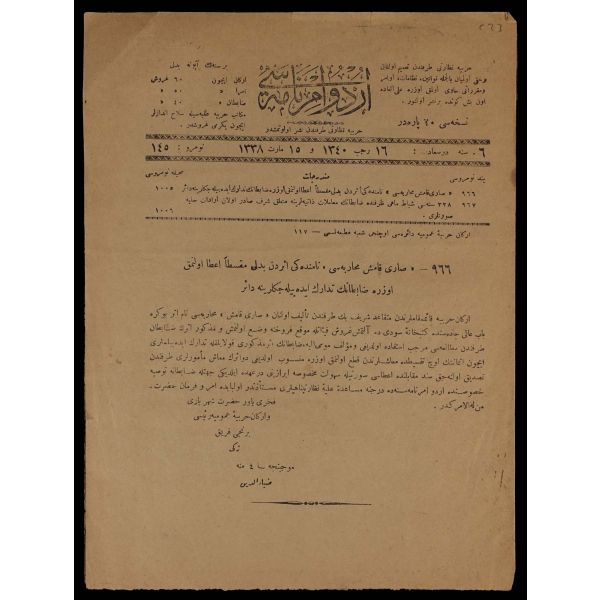 Arka yüzü Fransızca mektuplu.
