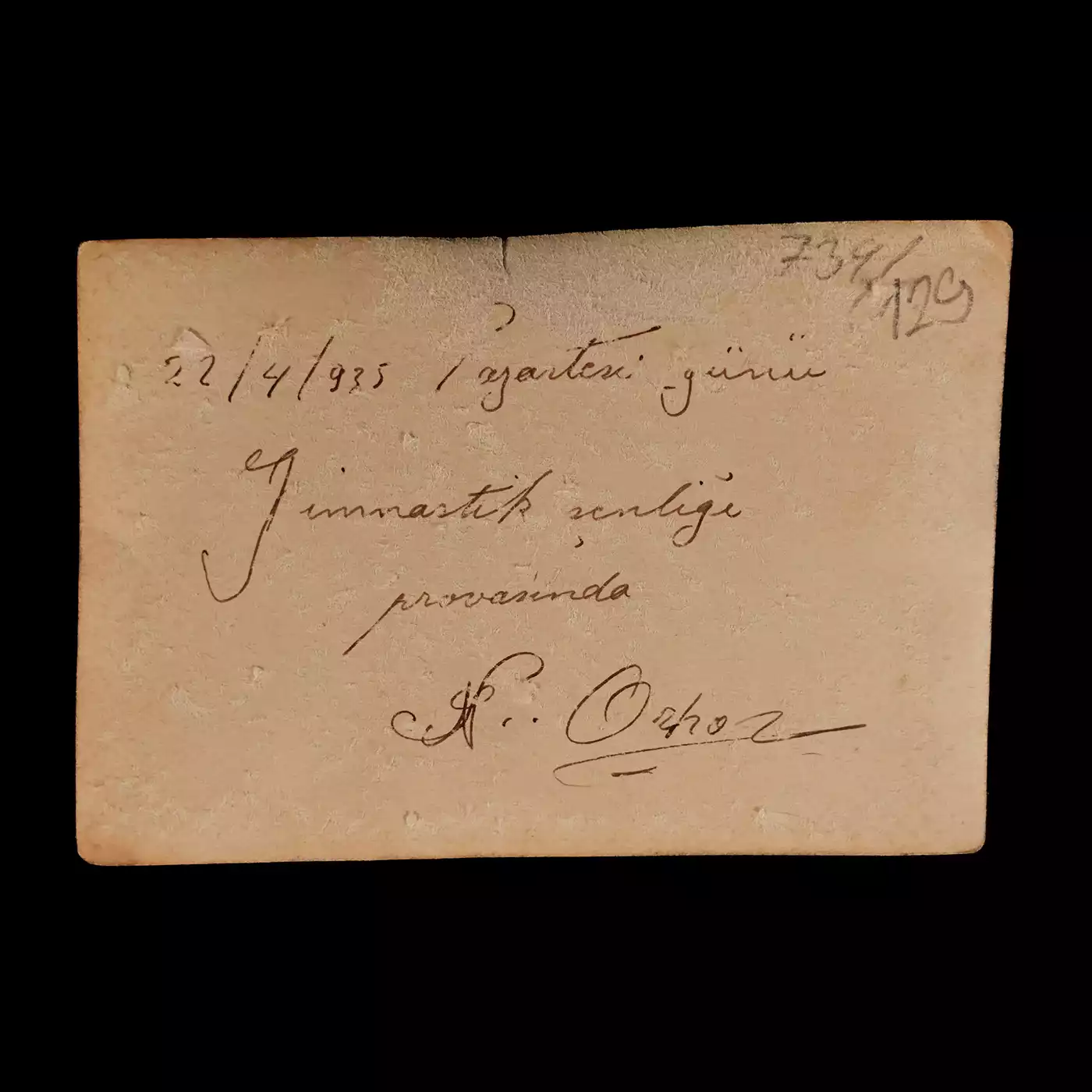 Fotoğrafın arka yüzüne, İstanbul Kız Lisesi´nden Şadiye imzasıyla, "8 Teşrin 1339 Cumartesi, İstanbul Kız Lisesi, orduyu istikbal etmeye giderken köprüde" notu düşülmüş ve fotoğrafta bulunanların isimleri yazılmıştır.