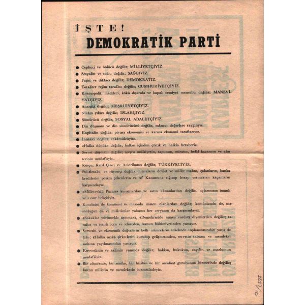 DEMOKRAT PARTİ, 17.08.2022 saat: 21:00'a kadar internet sitemizden pey verebilirsiniz. 21:02 itibariyle canlı müzayedemiz başlayacaktır. Kitap, Dergi ve süreli yayın hariç tüm ürünlerden % 20 ürün KDV'si alınmaktadır. Komisyon Oranı: % 20 + KDV'dir. ÖDEME SÜRESİ MÜZAYEDE BİTİMİNDEN SONRA 1 HAFTADIR.