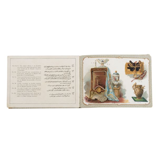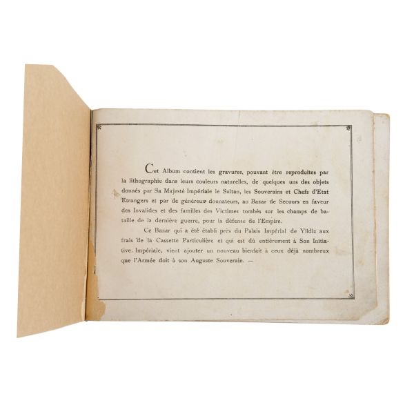Sultan İkinci Abdülhamit´in emriyle ve himayesiyle düzenlenen müzayedede satışa sunulan ürünlerin bazılarını bizzat Sultan II. Abdülhamid, bazılarını ise Alman İmparatoru II. Wilhelm ile Osmanlı Devleti´nin önde gelen devlet büyükleri vermiştir. Katalogda, ürünler hakkında açıklamalar ve renklendirilmiş fotoğrafları yer almaktadır. Müzayedenin geliri şehit ve gazi ailelerine bağışlanmıştır.