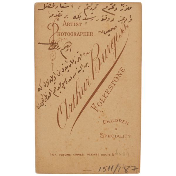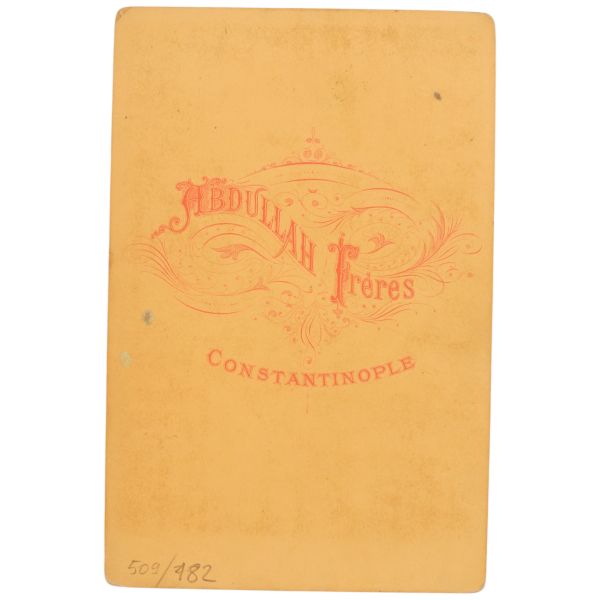 Fotoğrafın arka yüzüne Osmanlıca biyografisi kaleme alınmıştır.
