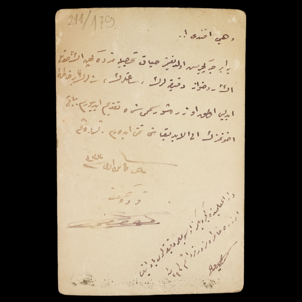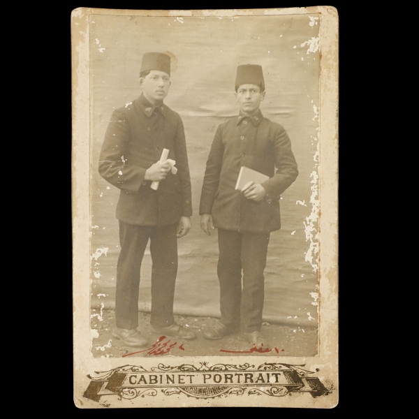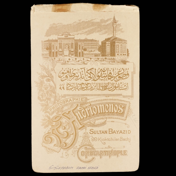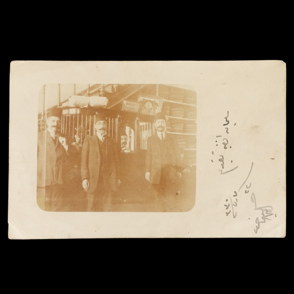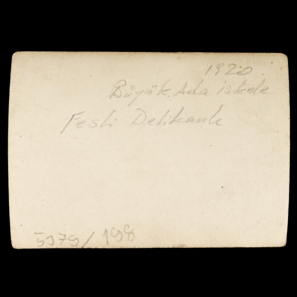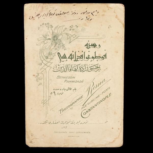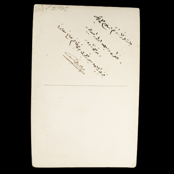 Fotoğrafın arka yüzünde, "Vehbi Efendi; Beraberce geçirmiş olduğumuz hayat-ı tahsiliyemizde geçen en tatlı en ruzvaz dakikaların, saatlerin, senelerin bir hatıra-i ebedisi olmak üzere şu resmimi size takdim ediyorum.. Baki uhuvvetimizin ilelebed bekasını temenni ederim kardeşim" ithafı ve bu ithafa cevap olarak Vehbi Efendi´nin kaleme aldığı "Darülmualliminde geçirdiğimiz o sevimli dakikaları yad etmek üzere hatıramızdır kardeşim." notu yer almaktadır.