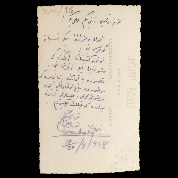 Fotoğraf üzerinde, "Kardeşim Hilmi Efendi´ye; Tel kafeste geçirilen siyah dakikaların ... hadim şu hayalim daimi bir vesile-i tahattur olarak takdim." ithafı yer almaktadır.