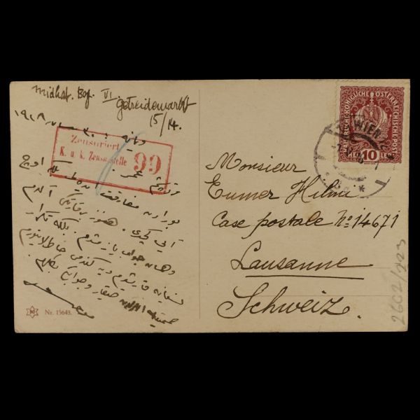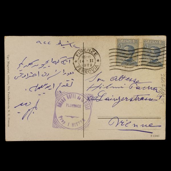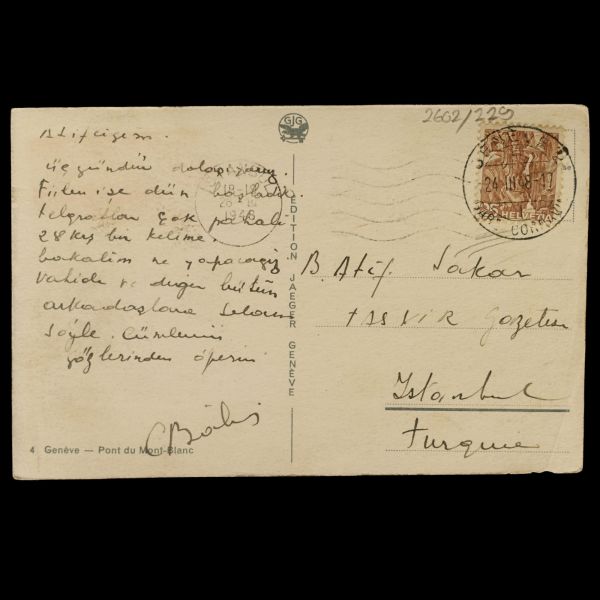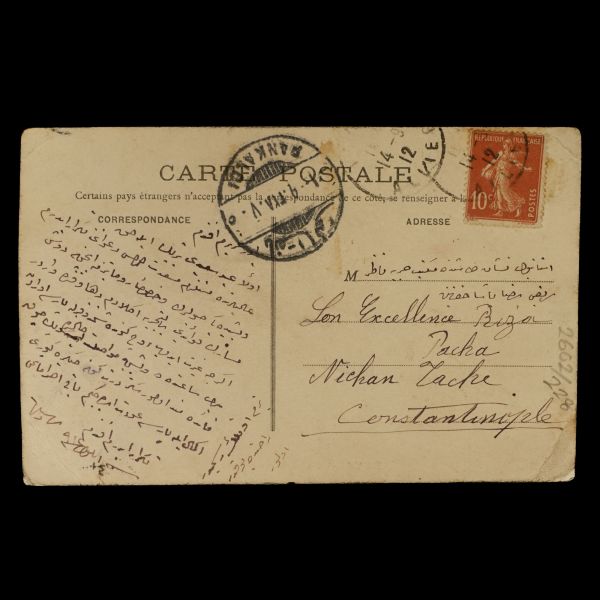 Kartpostalın arka yüzünde, "6 sene evvel burada 2 saat kalmıştım. Bugün yine Fransa´ya giderken 1 saat kaldım. Güzel şehirdir. Mektubunu bekliyorum. Fehime Sultan´dan da mektup alamıyorum. İnşallah afiyettedir." mektubu yer almaktadır.