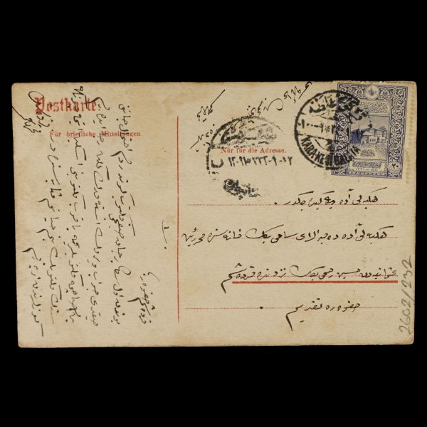 Kartpostalın arka yüzünde, "Kardeşim Ömer buradan mufarakat edeli belki üç ayı geçti. Henüz bir kartını aldım ve hemen cevap yazmıştım. Belki tekrar ... karışırım diye kendimi hatırlatıyorum. Samimiyetle ellerinden sıkar ve cevabını beklerim " mektubu; ön yüzünde ise "Bir zamanlar sana da muti´ bir simaya ne kadar benziyor değil mi?" yazısı yer almaktadır.