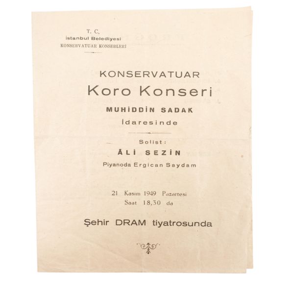 Tereke içerisinde, ünlü tiyatrocularımızdan Muhsin Ertuğrul´un ıslak imzasının yer aldığı bir teşekkür mektubundan tarihin n büyük keman virtüözlerinden sayılan Henri Wieniawski´ni kardeşi Adam Wieniawski´nin ıslak imzasını taşıyan mektuba kadar yerli ve yabancı pek çok sanatçının gönderderdiği mektuplar ve kartlar yer almaktadır. Mektupların yanı sıra Keman öğretimine dair kaleme alınmış kitaplar, keman nota defterleri ve Ali Sezin Bey´in çaldığı konserlerin davetiyeleri de bulunmaktadır.