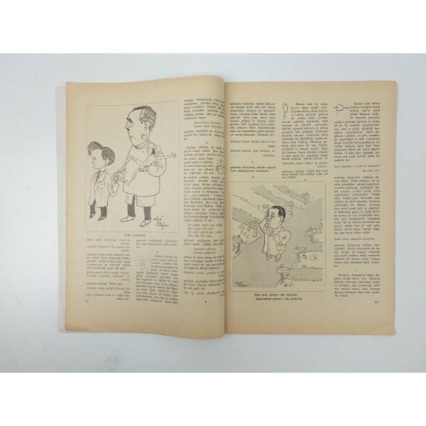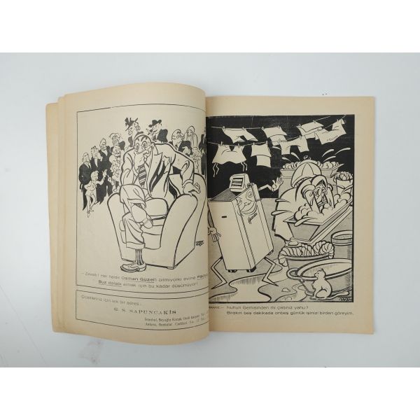 Türkiye´de yayımlanan ilk mizah dergisi Diyojen´in yayımcısı Teodor Kasap´ın yiğeni Rum asıllı Kosmas Theodoris´in 1931 senesinden 1953 senesine kadar 1 yıllık periyotlarla çıkardığı dergidir. Döneminde meydana gelen siyasi ve politik olayları konu alan karikatür ve fıkralar içeren mizahi bir tutum sergilemiştir. Satışa sunduğumuz dergi, Mustafa Kemal Atatürk´ün de yakın çalışma arkadaşlarından olan Eski İçişleri Bakanı Şükrü Kaya´ya ithaf edilerek imzalanmıştır.