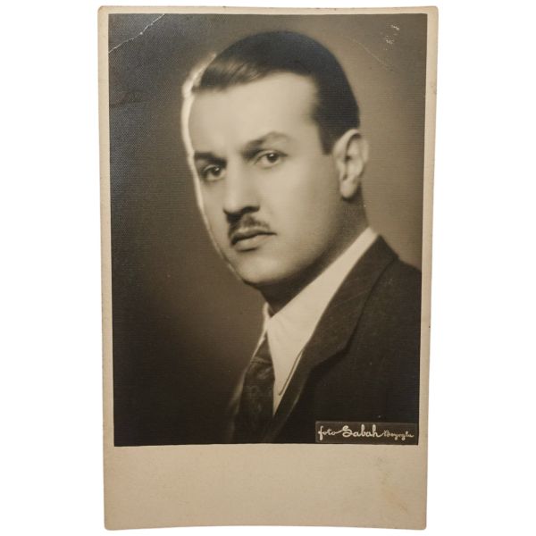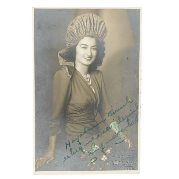 Fotoğrafın ithaf ve imza yazılı köşesi kısmen kesilmiştir.