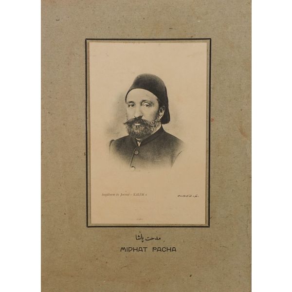 Fotoğrafın alt kısmında "Rehber-i İttihad-ı Osmani" notu, arka yüzünde ise "Ablam Şefika Hanımefendi´ye takdim" ithafı yer almaktadır.