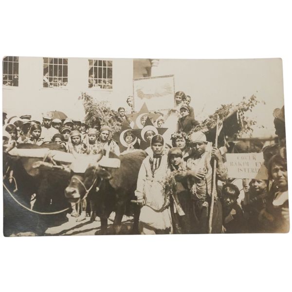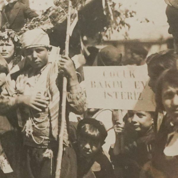 Fotoğrafta görülen pankartlardan bir kısmı: "Yabancı Malına Para Verm(e)" - "Yaban(cı) Malı Paramızı Dışarıya Akıtır / Yerli Malı Paramızı Yurdumuza Dağıtır" - "Vatandaş Tasarruf Et" - "Paranı Sakla" - "Yerli Malı Kullanmalı" - "İncir incir ballı incir, dizi dizi altın zincir, incir yiyen sağlam olur, Aydınlılar (mutlu olur)"