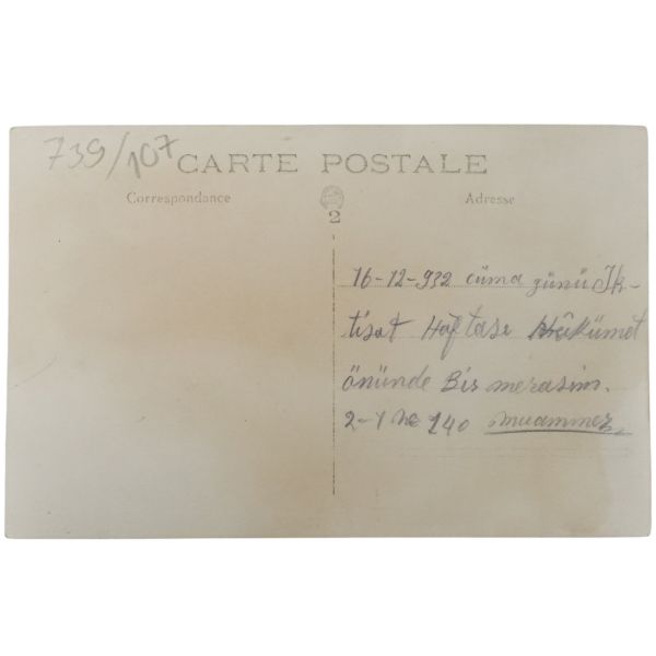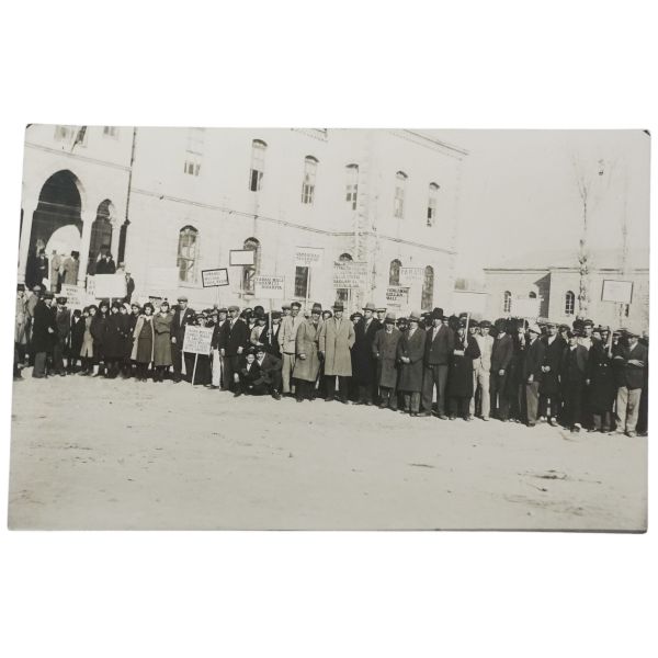 Fotoğrafın arka yüzüne düşülen not: "16-12-932 cuma günü İktisat Haftası Hûkümet önünde bir merasim."