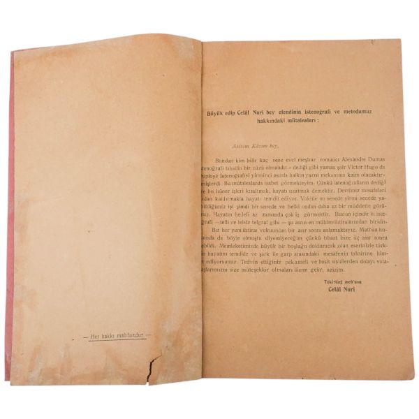 Stenografi, konuşma veya sesleri hızlı ve doğru bir şekilde kaydetmek için kullanılan bir kısaltılmış yazı sistemidir. Genellikle sembolller, işaretler veya harf kombinasyonlarıyla yapılır ve zamandan büyük oranda tasarruf sağlar. Muallim Hüseyin Kâzım´ın kitabın kapağında da belirttiği gibi: "Stenografi; işi kısaltmak, vakit kazanmak ve ömrü uzatmaktır."