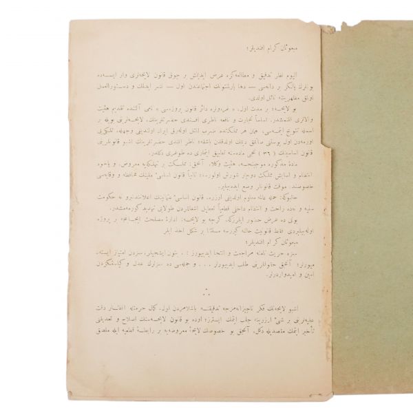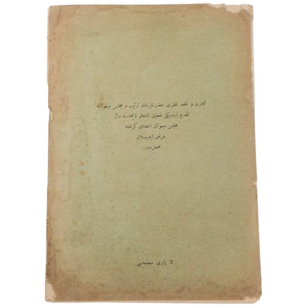 Osmanlı Devleti´nde 1908 senesinden itibaren çok sayıda yaşanan grev üzerine, Meclis-i Mebusan´ın bu grev eylemlerinin önüne geçmek için çıkardığı Tatil-i Eşgal Kanunu hakkında kaleme alınmıştır.