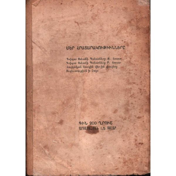 ERMENİCE KİTAP-EFEMERA, 09.10.2022 saat: 21:00'a kadar internet sitemizden pey verebilirsiniz. 21:02 itibariyle canlı müzayedemiz başlayacaktır. Kitap, Dergi ve süreli yayın hariç tüm ürünlerden % 20 ürün KDV'si alınmaktadır. Komisyon Oranı: % 20 + KDV'dir. ÖDEME SÜRESİ MÜZAYEDE BİTİMİNDEN SONRA 1 HAFTADIR.