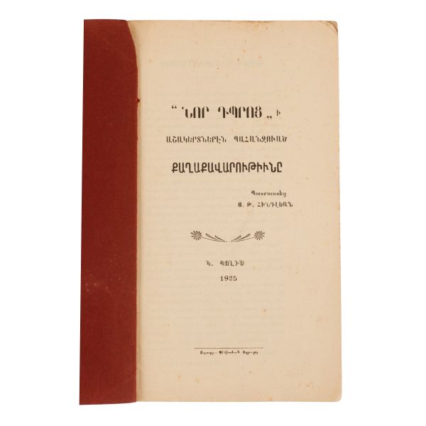 ERMENİCE KİTAPLAR, 15.09.2025 saat: 22:00'a kadar internet sitemizden pey verebilirsiniz. 22:02 itibariyle canlı müzayedemiz başlayacaktır. Kitap, Dergi ve süreli yayın hariç tüm ürünlerden % 20 ürün KDV'si alınmaktadır. Komisyon Oranı: % 20 + KDV'dir. ÖDEME SÜRESİ MÜZAYEDE BİTİMİNDEN SONRA 1 HAFTADIR.