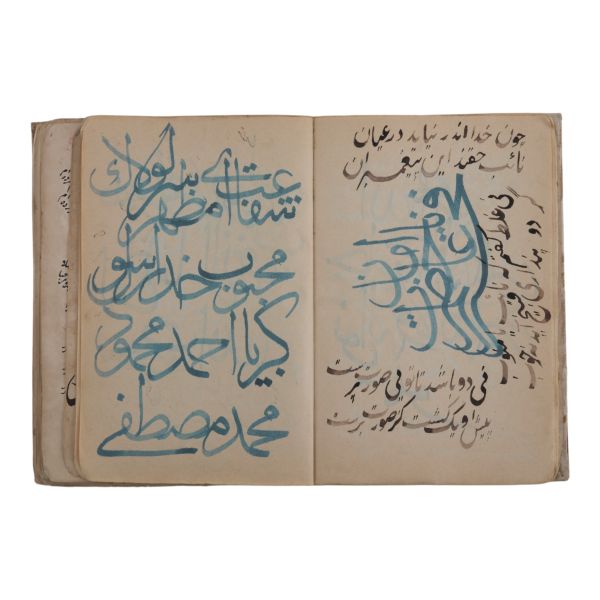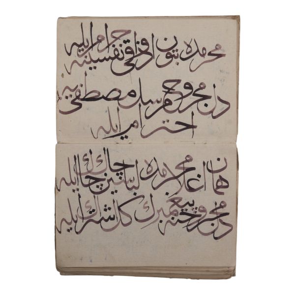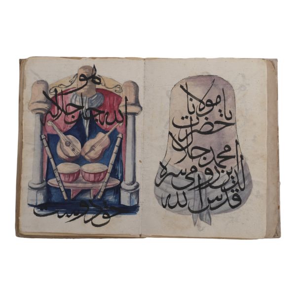 11 adet katlanır geometri çizim kağıdı ve Avrupa ebrulu deri dönem cildinde. Nizami rika hattıyla siyah ve kırmızı mürekkeple yazılmıştır.