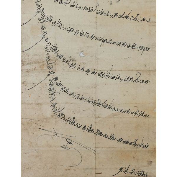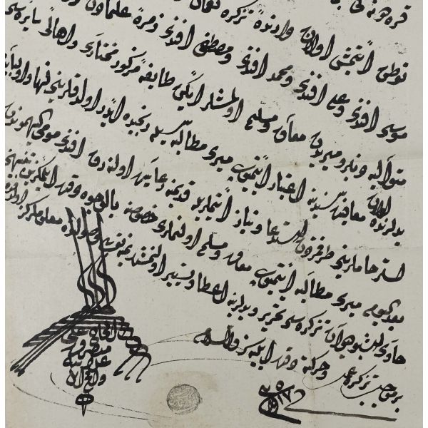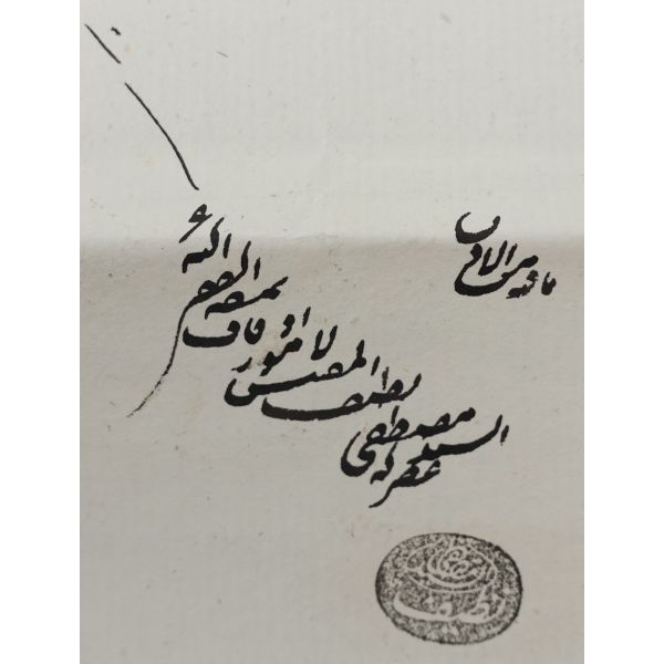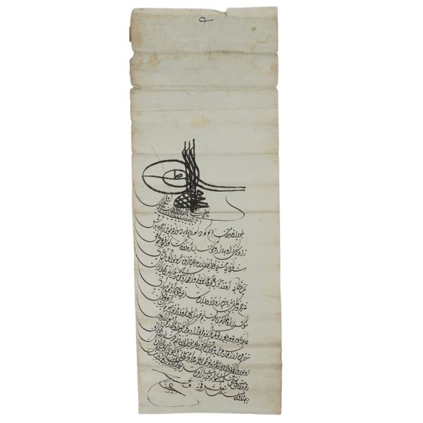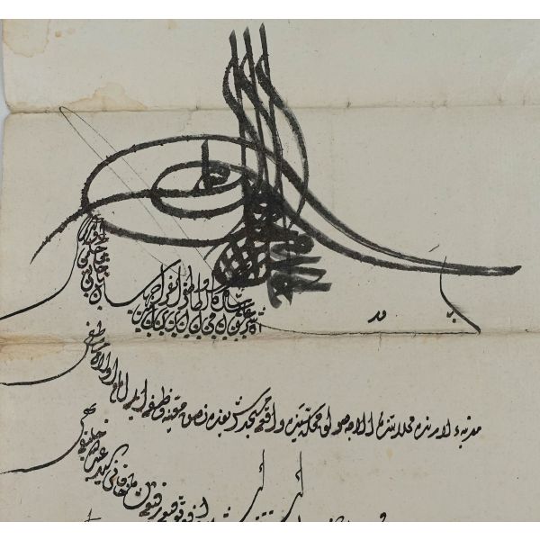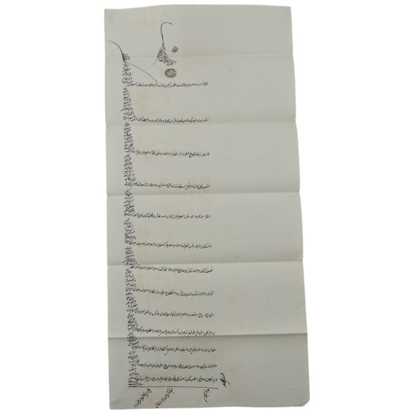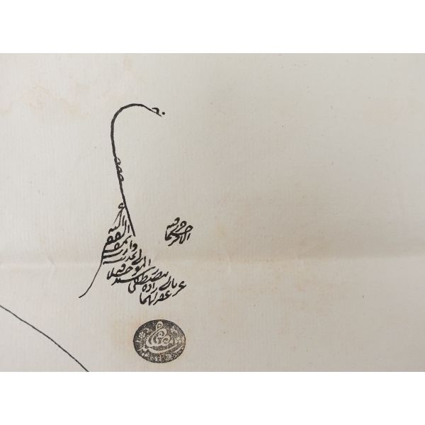 Larende´de (Karaman) bulunan Zeynelabidin Camii Şerifi´nin vaizi Ebubekir Efendi´nin vefat etmesi üzerine bu göreve oğlunun getirildiğine dair el çekme Sultan İkinci Mahmut tuğralı tevliyet beratı...